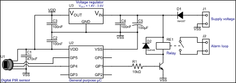 典型應(yīng)用電路:集成式PIR數(shù)字探頭