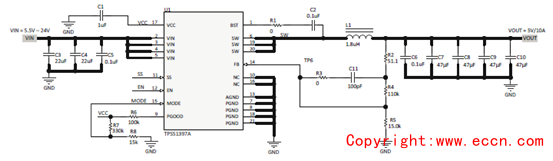圖2. TPS51397A 5V 10A參考設(shè)計(jì)電路圖