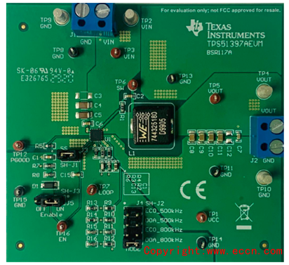 圖3.評(píng)估模塊TPS51397AEVM外形圖(正面)