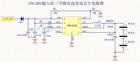 PW4203,輸入 15V-20V,降壓輸出 12.6V 的三節(jié)鋰電池充電電流芯片,2A