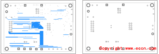 圖10.評估板MAX17320X EVK PCB設(shè)計(jì)圖:左:層2;右:層3