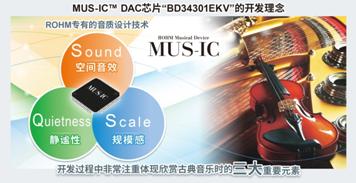 “MUS-IC™”(正式名稱:ROHM Musical Device “MUS-IC™”)是在ROHM的企業(yè)特色—“質(zhì)量第一”、“為音樂文化的普及與發(fā)展做貢獻”、“垂直統(tǒng)合型生產(chǎn)”基礎(chǔ)上,融合“音質(zhì)設(shè)計技術(shù)”開發(fā)而成的,是ROHM的音質(zhì)負責人帶著自信推出的高端音頻IC專用的音頻產(chǎn)品品牌。