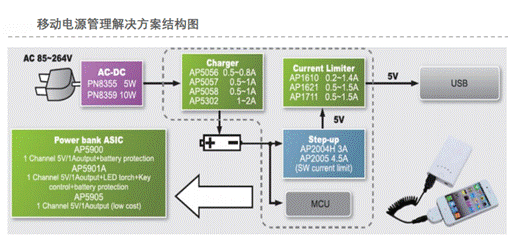 1.基本原理:移動電源系統(tǒng)提供分立式系統(tǒng)方案,包括AC/DC、升壓DC/DC、USB限流、鋰電充電管理等全系列的電源管理芯片產(chǎn)品;