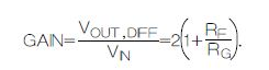 圖中的外接電阻RF和RG設定單端-差分放大器的增益,即