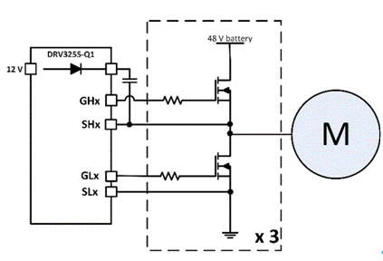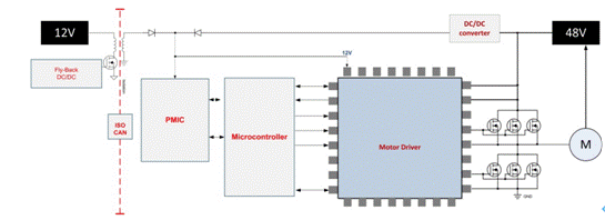 圖3:典型的48V大功率電機驅(qū)動器方框圖