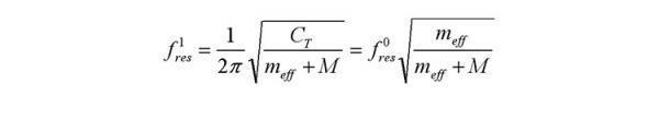 加載一個(gè)質(zhì)量為M負(fù)載到陶瓷,此系統(tǒng)的諧振頻率可以用下式表示: