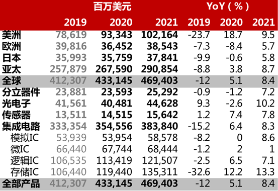 據(jù)市場調(diào)研機構(gòu)WSTS數(shù)據(jù)顯示,全球半導(dǎo)體在2021年都會迎來一個較大幅度的增長,亞太地區(qū)半導(dǎo)體規(guī)模將同比上漲8.7%。具體到分立器件,預(yù)測2021年市場規(guī)模達到252.92億美元,同比增長7.2%。
