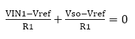 假設(shè)施加到輸入引腳IN1的電壓是VIN1,并且輸入級反相放大器的增益是無限大的,則反相輸入引腳的電壓將是Vref。