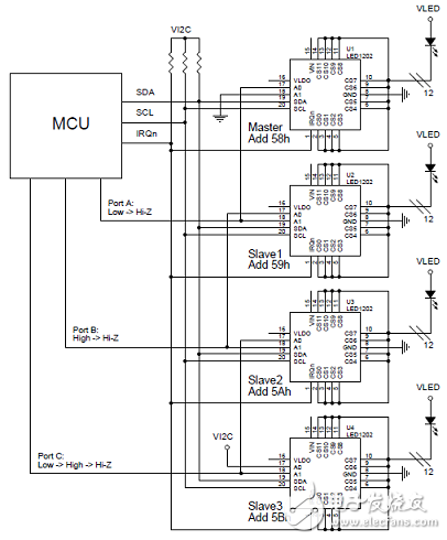 ST公司的LED1202是12路低靜態(tài)電流LED驅(qū)動(dòng)器,保證了5V輸出驅(qū)動(dòng)功能,而每路能提供高達(dá)20 mA和電壓裕度僅為350mV.每路的輸出電流由8位模擬和12位數(shù)字調(diào)光控制來(lái)單獨(dú)調(diào)整.慢開時(shí)間和慢關(guān)時(shí)間提高了系統(tǒng)的低噪音性能,而移相功能有助于降低浪涌電流,八種模式存儲(chǔ)在內(nèi)部寄存器而不需要MCU干預(yù)進(jìn)行自動(dòng)定序.器件的1.8V兼容的I²C接口基于快速模式指標(biāo),工作高達(dá)400kHz.工作電壓2.6V-5V,每路的電流能力20mA,16mA時(shí)的12路的電流匹配度1%,2.5mA時(shí)的匹配度2%,8位模擬調(diào)光單獨(dú)控制,12位本地PWM分辨率.LED1202具有LED開路檢測(cè)和超溫保護(hù).主要用在RGB照明如可穿戴電子學(xué),電池供電設(shè)備和手持附件.本文介紹了LED1202主要特性,框圖和驅(qū)動(dòng)器電路框圖,以及評(píng)估板STEVAL-LLL007V1主要特性,電路圖和材料清單.