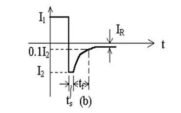 正向時(shí)積累在各區(qū)的大量少子要被反向偏置電壓拉回到原來的區(qū)域,開始時(shí)的瞬間,流過P-N結(jié)的反向電流很大,經(jīng)過一段時(shí)間后,原本積累的載流子一部分通過復(fù)合,一部分被拉回原來的區(qū)域,反向電流才恢復(fù)到正常情況下的反向漏電流值IR。