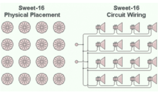 舉例來(lái)說(shuō),如果每個(gè)揚(yáng)聲器呈現(xiàn)8Ω的音圈阻抗,則16個(gè)揚(yáng)聲器組成的復(fù)合揚(yáng)聲器也將呈現(xiàn)相同的8Ω。
