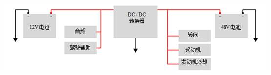 德國汽車制造商已開始定義并構(gòu)建基于48V電池的系統(tǒng)。48V電池可在比傳統(tǒng)12V電池更低的電流下提供更多的功率,同時節(jié)省線束重量,而不會影響性能。在這種發(fā)展過程中,LV148標(biāo)準(zhǔn)已成為雙電池汽車系統(tǒng)的主要出發(fā)點(diǎn)。雙電池系統(tǒng)的頂層框圖如圖1所示。