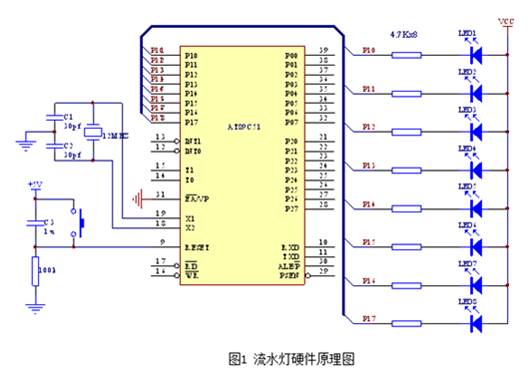 當(dāng)今時(shí)代是一個(gè)新技術(shù)層出不窮的時(shí)代,在電子領(lǐng)域尤其是自動(dòng)化智能控制領(lǐng)域,傳統(tǒng)的分立元件或數(shù)字邏輯電路構(gòu)成的控制系統(tǒng),正以前所未見的速度被單片機(jī)智能控制系統(tǒng)所取代。單片機(jī)具有體積小、功能強(qiáng)、成本低、應(yīng)用面廣等優(yōu)點(diǎn),可以說,智能控制與自動(dòng)控制的核心就是單片機(jī)。目前,一個(gè)學(xué)習(xí)與應(yīng)用單片機(jī)的高潮正在工廠、學(xué)校及企事業(yè)單位大規(guī)模地興起。學(xué)習(xí)單片機(jī)的最有效方法就是理論與實(shí)踐并重,本文筆者用AT89C51單片機(jī)自制了一款簡易的流水燈,重點(diǎn)介紹了其軟件編程方法,以期給單片機(jī)初學(xué)者以啟發(fā),更快地成為單片機(jī)領(lǐng)域的優(yōu)秀人才。