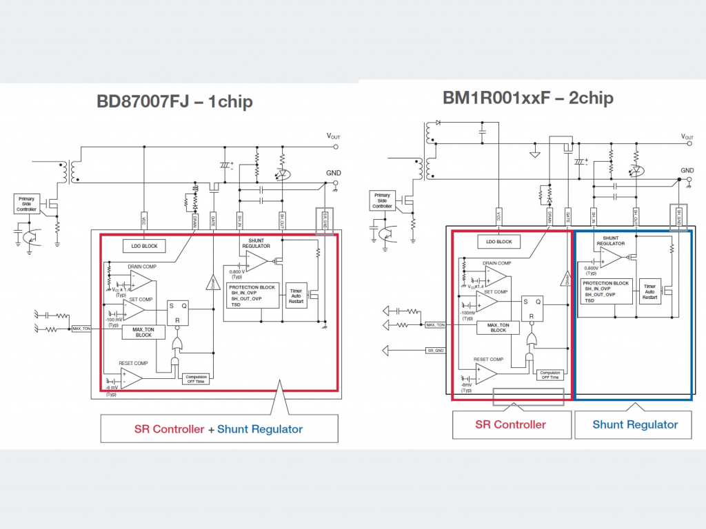 ROHM的SR控制器旨在提供易于集成的同步整流解決方案。該SR控制器能夠支持本文介紹的許多功能,并且只需要很少的外部組件。因此,ROHM的SR控制器在CCM和DCM模式下都能實(shí)現(xiàn)高性能的同步整流解決方案。SR-IC的其他可選型號(hào)還內(nèi)置有并聯(lián)穩(wěn)壓器,不僅具有靈活的接地參考,待機(jī)功耗也非常低。 |