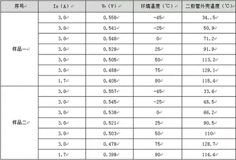 表 1 導(dǎo)通壓降與導(dǎo)通電流測試數(shù)據(jù)