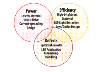 如圖2所示,LED可靠性在各個領(lǐng)域都取得了長足的進步。更高的LED內(nèi)部量子效率,更好的LED光提取以及光通道效率的提高,使得能夠降低輸入驅(qū)動電流(IF)的要求。通過設(shè)計低正向電壓(VF)LED,Avago可以降低輸入功率(IF x VF),以減少LED產(chǎn)生的熱量。良好的電流分布LED設(shè)計將改善LED內(nèi)的電流分布,從而進一步改善固有壽命。