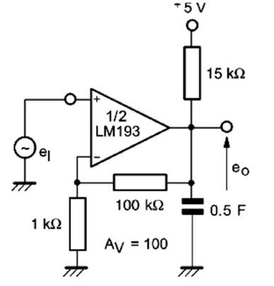 搞電子設(shè)計(jì)的朋友都知道,在要求不高的場(chǎng)合,可以用運(yùn)算放大器代替電壓比較器使用,但反過來能把電壓比較器當(dāng)運(yùn)算放大器用嗎?我們先來看一下仿真。筆者選擇一片常用的比較器LM393,用Multisim11.0軟件進(jìn)行仿真。在查閱LM393數(shù)據(jù)手冊(cè)時(shí),意外發(fā)現(xiàn)ST公司 推薦的一個(gè)電路圖,如圖1所示。這是比較器用作低頻放大器時(shí)的推薦電路,那就用它來做試驗(yàn)吧!