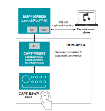 基于手勢的電容式觸控揚聲器界面參考設(shè)計(如圖 7 所示)提供了一種易于使用的評估系統(tǒng),用于使用 TI 電容式觸控MCU 的智能揚聲器的多手勢電容式觸控界面。此設(shè)計支持點擊、輕滑、滑動和旋轉(zhuǎn)手勢。