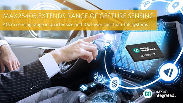 Maxim Integrated最新發(fā)布基于紅外的動態(tài)手勢傳感器,能夠在更遠(yuǎn)的距離檢測各種手勢,確保駕駛員專注于道路