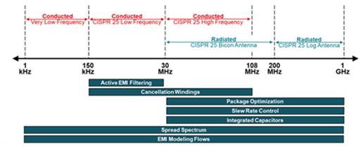 圖 5:TI 的功率轉(zhuǎn)換器和控制器為了大幅降低 EMI 而采用的技術(shù)