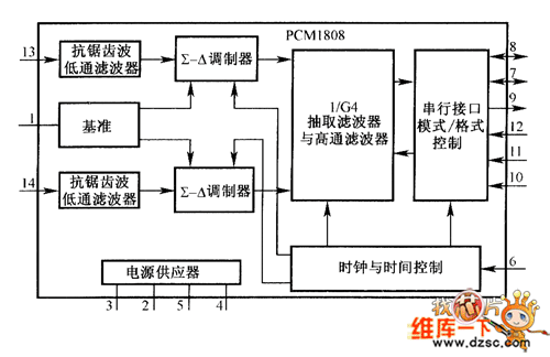 PCM1808為96KHz立體聲A/D轉(zhuǎn)換器。雙電源供電(5C模擬/3.3V數(shù)字).采用14腳TSSOP封裝,應(yīng)用在數(shù)字電視、AV放大器/接收器、MD播放器、CD刻錄機(jī)、多軌接收器及電子音樂(lè)儀器等產(chǎn)品上.