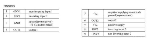 在使用TDA1521 進(jìn)行設(shè)計(jì)之前,同樣需要知道其引腳功能,但首先我們要知道引腳的順序。通常來(lái)說(shuō),一個(gè)單列直插的集成電路如果正面面向使用者時(shí),其左邊的引腳為1 腳,向右依次遞增。此外,芯片制造商通常也會(huì)在1 腳所在的方向做標(biāo)記,以便使用者辨別,圖中,在TDA1521 的左側(cè)有一條白條,意味著芯片的第1引腳應(yīng)該在左側(cè)。