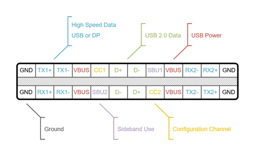現(xiàn)行主流 USB Power Delivery 3.0 高可支持 20V/5A 的電力輸出,即 100W 的充電功率( 2021 年 5 月發(fā)布的 PD 3.1 進(jìn)一步支持高達(dá) 48V/5A 的電力規(guī)格)。USB Type-C 接口除了可以進(jìn)行基于 PD 規(guī)范的大功率充電外,還可以實現(xiàn) DisplayPort 1.4 視頻傳輸、Thunderbolt 4 等功能。因此,具有全功能 Type-C 接口的設(shè)備可以實現(xiàn)通過單一接口進(jìn)行雙向充電、視頻輸出等功能。