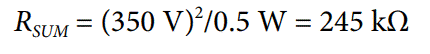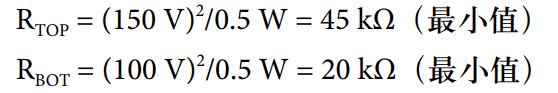 150 V,RBOT達(dá)到 100 V。使用額定功率為 1 /2瓦的 2512 電阻,設(shè)計必須將每個電阻器的功耗(V2/R) 限制在 0.5 W