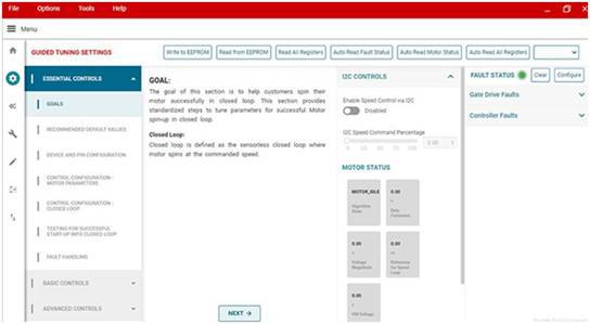 在無傳感器 FOC 算法中,由于集成了先進控制技術(shù),因此可以顯著加快電機調(diào)諧,例如,通過自行測量電機參數(shù)或自動執(zhí)行控制環(huán)路的調(diào)諧等方式加快速度。引導(dǎo)式調(diào)諧圖形用戶界面 (GUI) 提供默認(rèn)的電機啟動選項(如圖 3 所示),有助于順利完成調(diào)諧過程并盡快使電機旋轉(zhuǎn)起來。無需編程的電機驅(qū)動器(例如用于 FOC 的 MCF8316A 和用于梯形控制的 MCT8316A)包括用于電機啟動以及閉環(huán)和電機停止操作的多個可配置選項。借助這些選項,在幾分鐘內(nèi)就能優(yōu)化電機性能,顯著縮短了設(shè)計周期。