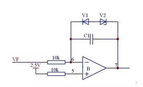 在下圖中,1M電阻就起到滯環(huán)的作用,如果沒有1M電阻,很明顯,VF電壓達(dá)到2.5V運(yùn)放輸出低電平,低于2.5V,運(yùn)放輸出高電平。增加1M電阻后,在運(yùn)放輸出低電平時(shí),6腳電平為0.7 (2.5-0.7)*1000/1010=2.48V。當(dāng)VF低于6腳電平后,7腳輸出高電平(如果運(yùn)放供電15V,7腳輸出可按照14V計(jì)算)可以計(jì)算此時(shí)6腳電平為2.5 (14-2.5)*10/1010=2.61V,如果這是一個(gè)輸入欠壓保護(hù)電路,且VF為100:1的取樣,則當(dāng)輸入電壓高于261V,電路正常工作,當(dāng)電壓低于248V才會(huì)欠壓保護(hù),這樣就增強(qiáng)了保護(hù)電路的抗干擾能力。