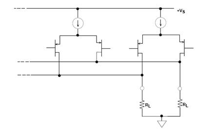 TxDAC系列中的基本電流開關(guān)單元由圖6所示的差分PMOS晶體管對(duì)組成。這些差分對(duì)通過(guò)低電平邏輯驅(qū)動(dòng),以便最大程度地降低開關(guān)瞬變和時(shí)間偏斜。DAC輸出為對(duì)稱的差分電流,有助于減少偶數(shù)階失真產(chǎn)物(特別是驅(qū)動(dòng)變壓器或運(yùn)放差分電流電壓轉(zhuǎn)換器等差分輸出時(shí))。