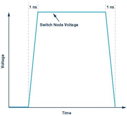 對于現(xiàn)代開關(guān)模式穩(wěn)壓器,它們只有幾納秒長。采用新開關(guān)技術(shù)(例如SiC或GaN)之后,這些開關(guān)轉(zhuǎn)換的時間特別短。圖1所示為大約 1納秒長的開關(guān)轉(zhuǎn)換時間;A(chǔ)頻率不能與降壓型穩(wěn)壓器的開關(guān)頻率混淆。但是,有一些方法可以克服干擾問題。如圖1所示,應(yīng)該盡可能快地開關(guān)邊緣,以便盡可能減少開關(guān)損失。
