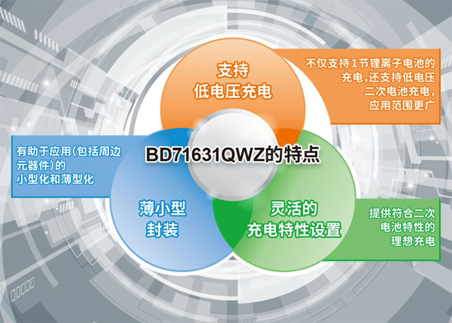 全球知名半導(dǎo)體制造商ROHM(總部位于日本京都市)開發(fā)出一款充電控制 IC“BD71631QWZ”,該產(chǎn)品支持搭載二次電池的無線耳機(jī)等可穿戴設(shè)備以及智能顯示器等小而薄的物聯(lián)網(wǎng)設(shè)備的低電壓充電。