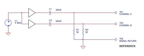 讓我們來看一個簡化的端口,圖1。典型系統(tǒng)中的放大器(CODEC或離散放大器)通過電容器耦合到負(fù)載。