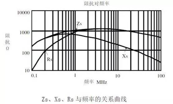 開關(guān)電源產(chǎn)生的共模噪聲頻率范圍從10kHz~50MHz甚至更高,為了對這些噪聲有效的衰減,那么在這個頻率范圍內(nèi),共模電感器就必須提供足夠高的阻抗。因此高磁導(dǎo)率的錳鋅鐵氧體和非晶材料是非常適合的。共模電感器的阻抗Zs由串聯(lián)感抗Xs和串聯(lián)電阻Rs兩部分組成,Zs、Xs、Rs三者隨頻率變化的典型趨勢見下圖。