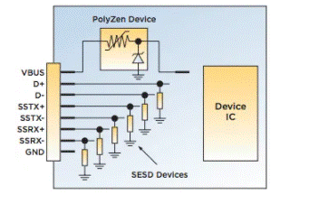 可以在VBUS上安裝PolyZen設(shè)備,以保護設(shè)備端USB。