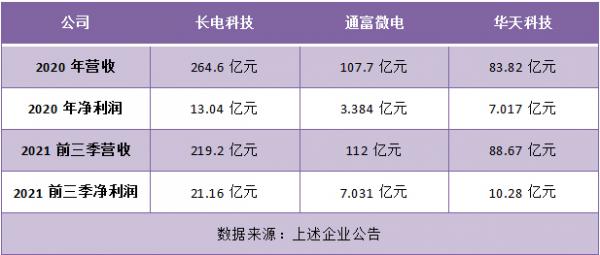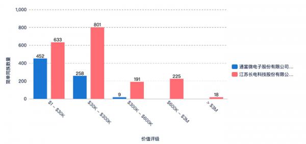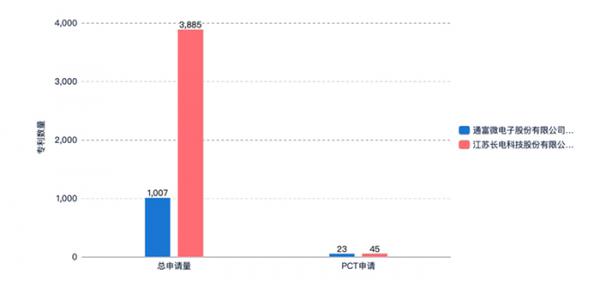 總體數(shù)量對(duì)比:長(zhǎng)電科技遙遙領(lǐng)先