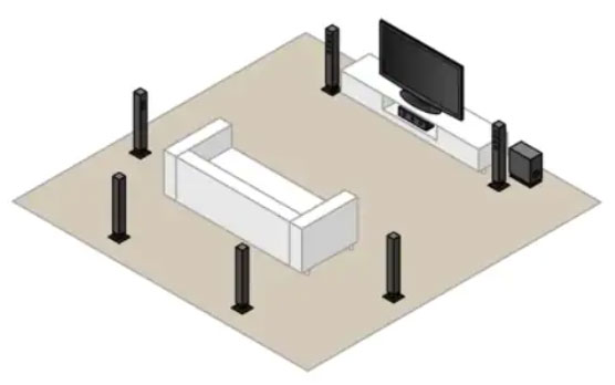 圖3:以較小角度放置更多揚(yáng)聲器,有助于消除可能出現(xiàn)的音頻熱點(diǎn),尤其是在音軌沒有正確地進(jìn)行混音或處理,或者音頻轉(zhuǎn)換器未能正確處理環(huán)繞聲的情況下。(圖源:Zern Liew/Shutterstock.com)