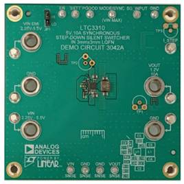 控制器的一個(gè)替代方案是單芯片解決方案,其中FET在轉(zhuǎn)換器IC內(nèi)部。例如,LTC3310S單片降壓調(diào)節(jié)器(IC尺寸為3 mm×3 mm)可實(shí)現(xiàn)負(fù)載點(diǎn)解決方案,單個(gè)IC最多可提供10 A電流,并聯(lián)多個(gè)IC可提供20 A電流。這些IC分別如圖6和圖12所示。