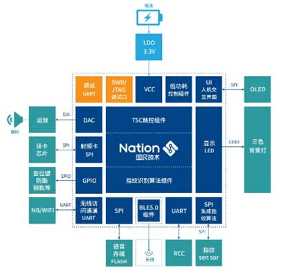 圖示3-基于Nations產(chǎn)品的單芯片安全智能門鎖方案的方塊圖