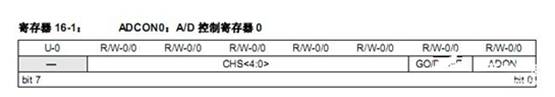 上面將有關(guān)ADCON1寄存器的配置說完了。下面來講解ADCON0