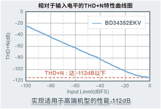 “BD34352EKV”是繼2021年2月推出的MUS-IC™ DAC芯片“BD34301EKV”(量產(chǎn)中)之后,針對更廣泛的音響設(shè)備產(chǎn)品需求而開發(fā)的新產(chǎn)品。不僅繼承了ROHM DAC芯片的基本理念“自然而平穩(wěn)的聲音”,同時(shí),還進(jìn)行了一些調(diào)整,能夠更強(qiáng)有力地表現(xiàn)出音源中的能量。另外還搭載了高性能數(shù)字濾波器*2(與同為高端機(jī)型的“BD34301EKV”中搭載的濾波器具有同等高性能),表現(xiàn)出優(yōu)異的性能參數(shù)(SN比:126dB,THD+N:-112dB),實(shí)現(xiàn)了與高端機(jī)型用DAC芯片相符的性能。