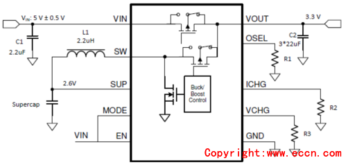 圖5. TPS61094 5V輸入3.3V升壓轉(zhuǎn)換器帶自動降壓或升壓功能(2)