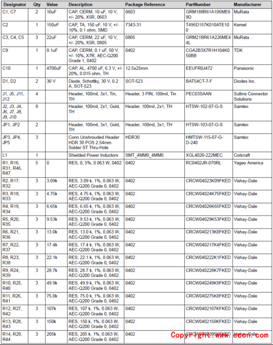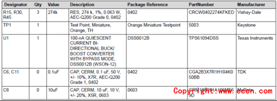 評估模塊TPS61094EVM-066材料清單:
