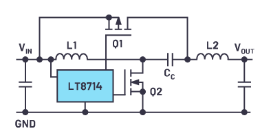 ADI LT8714 是用于四象限穩(wěn)壓器的控制器。它擁有此類調(diào)節(jié)所需的全部功能。例如,使用該IC可以精確維持0 V的電壓。圖3顯示了帶有控制器IC和功率級(jí)的簡(jiǎn)化電路圖。后者由兩個(gè)電感L1和L2、兩個(gè)開關(guān)Q1和Q2以及耦合電容CC組成。有關(guān)每個(gè)象限中的相應(yīng)操作以及從一個(gè)象限到另一個(gè)象限的轉(zhuǎn)換行為的說(shuō)明,請(qǐng)參閱LT8714數(shù)據(jù)手冊(cè)。