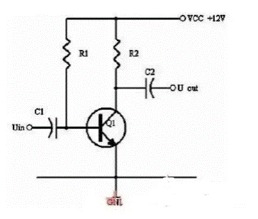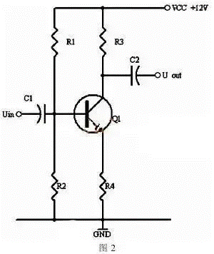 同理,當(dāng)輸入信號(hào)減小時(shí),則Ib減小,Ic電流減小,則電阻R2的電壓U2=Ic×R2會(huì)隨之減小,Uce=VCC-U2,會(huì)變大。在輸入信減小時(shí),Uce最大變化是從1/2的VCC變化到VCC。這樣,在輸入信號(hào)一定范圍內(nèi)發(fā)生正負(fù)變化時(shí),Uce以1/2VCC為準(zhǔn)的話就有一個(gè)對稱的正負(fù)變化范圍,所以一般圖1靜態(tài)工作點(diǎn)的設(shè)置為Uce接近于電源電壓的一半。