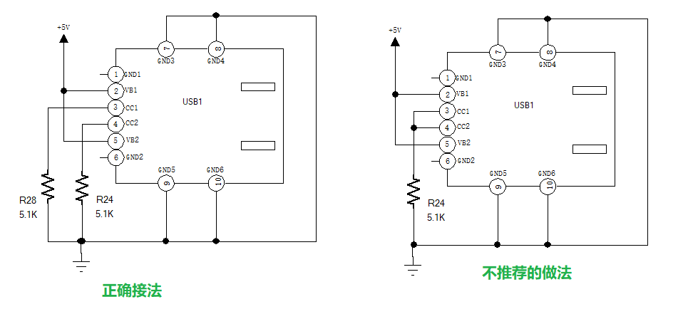 - 充電倉的TYPE-C USB的兩個 CC1,CC2腳不能短接在一起,要各自獨立接下拉電阻: