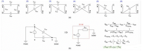 5:(a) 六種可能的雙電容 CM 模型;(b) 雙電容 CM 模型及其戴維寧等效電路