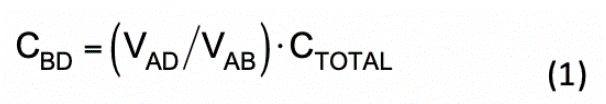 50W 的開關頻率正弦激勵信號,并測量 VAD與 VAB的電壓比,可由公式 1 推導出 CBD: