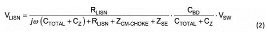 CTOTAL,則可以認為該模型是準確的。顯然,減小 CBD和增大 ZCM-CHOKE或 CZ都會導致噪聲電壓降低。注意,如果根據公式 1 測得的 VAD為零,則